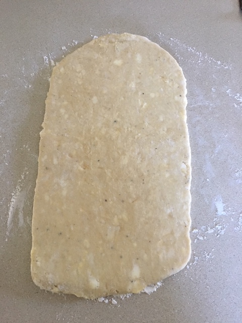 When you come to the end, fold the last strip/flap of dough over the top, and pinch the top of the dough closed with your fingers. Repeat with second dough.