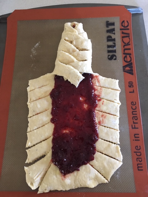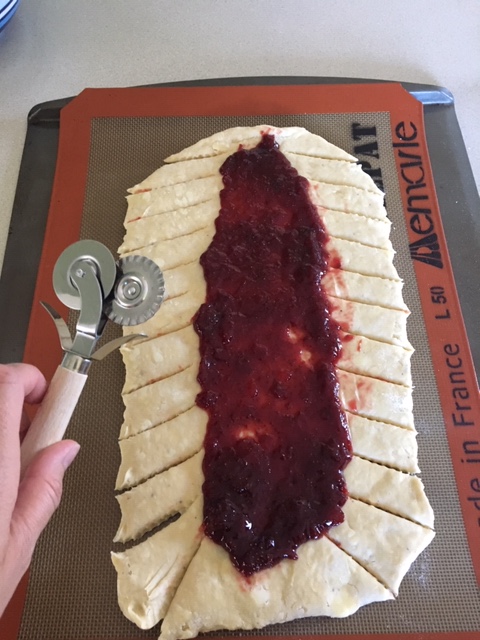 To do this, you will need a danish dough prepped and ready to go – again, see Danish Dough, Part I to get the recipe. The next step involves a bit more rolling, some cutting, filling, braiding, and baking.