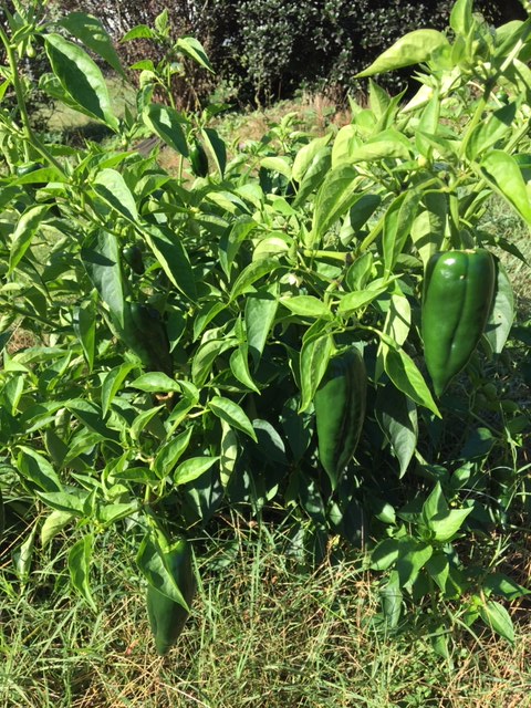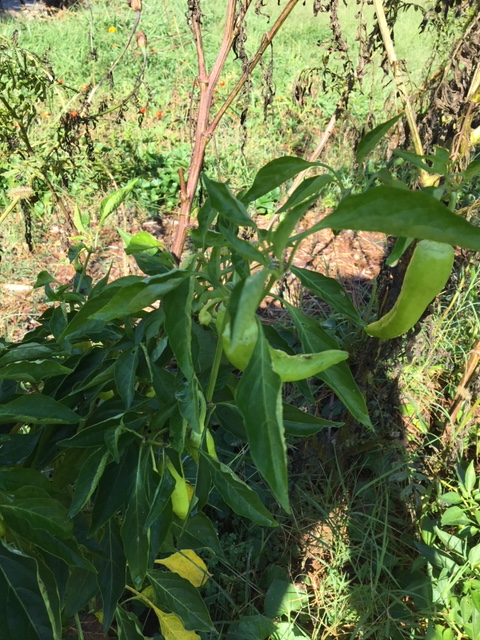 Banana peppers back with a vengeance since trimming back the giant marigolds.