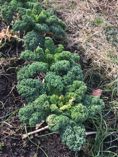 So, back to our fresh greens. I love having kale in the winter garden because I can have a fresh salad anytime I want, at any time of year. Right now, it’s too cold and early for any salad greens (such as arugula, lettuce, and the like), as is most of the winter. And I’m not actually much of a salad person – unless the salad is particularly good, I’ll often eat it as a perfunctory “I need a vegetable with this filthy meal full of cheese” side dish – but I actually like kale salad.