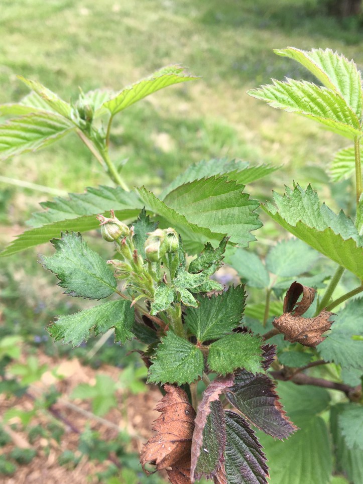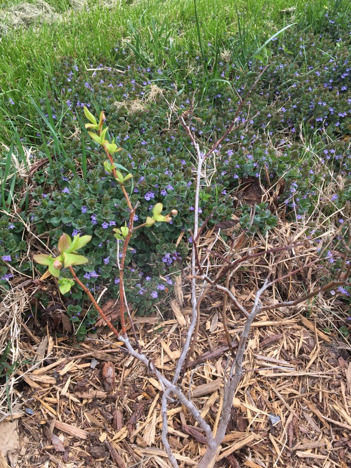 Oh, man, the berries are back! Two giant raspberry brambles (not counting the canes they put out over the past year), one blackberry, and two blueberry bushes coming back to life are most exciting for future berry-related endeavors.