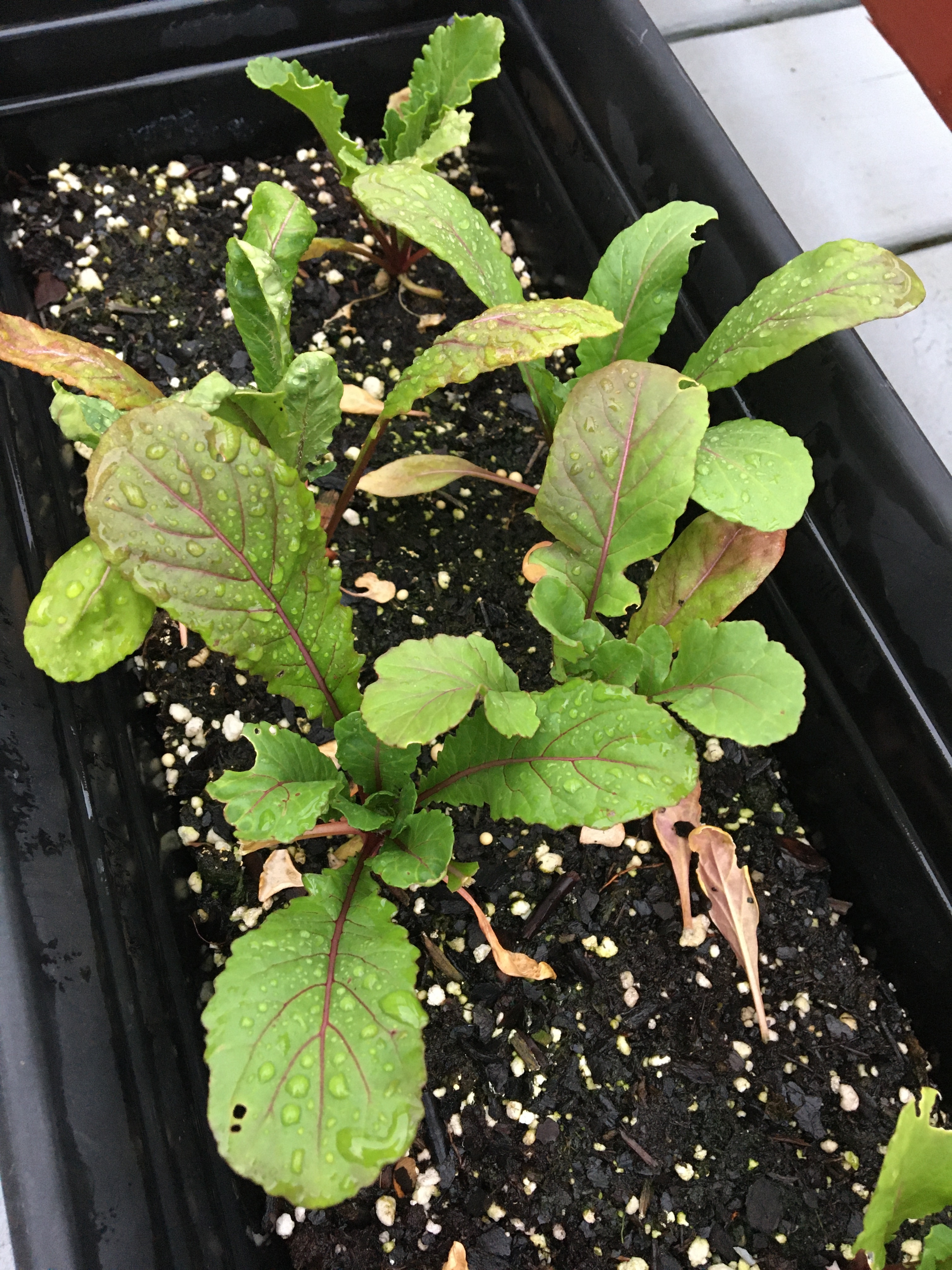 Our lettuce is doing beautifully while our arugula recovers from the flip-flopping weather we’ve been having. Our radishes are also nearly ready for harvesting: