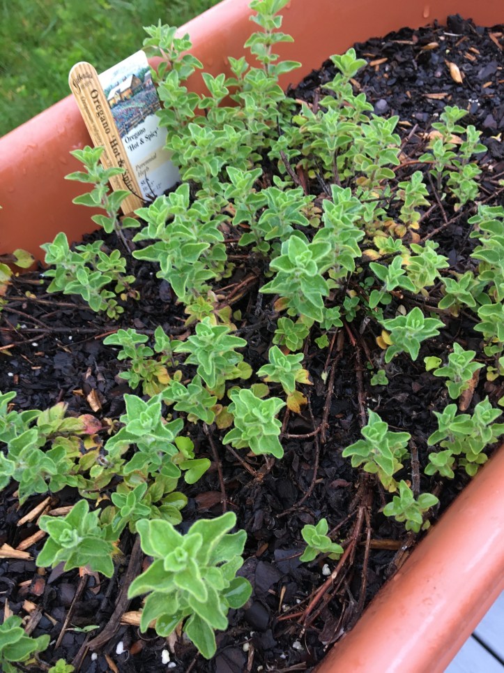And our perennial mint, oregano, and thyme are thriving, hooray! (Everyone throw the good vibes at our sage plants, not pictured, which aren’t doing as well as we’d like.)
