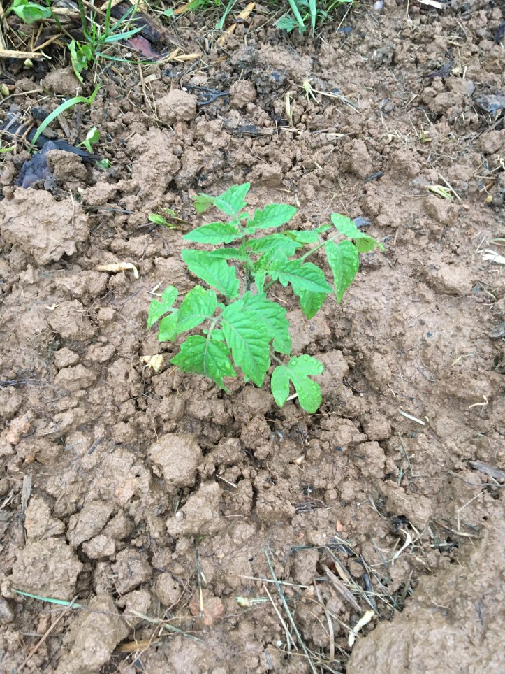 Actually, we’re pretty proud of that dirt, seeing as planting veggies is 90% digging in compost, tilling, and weeding, and 10% actual planting of seeds and seedlings. We got our workout this weekend, for sure.