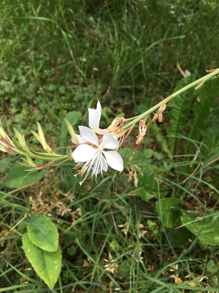 As usual, I’ll leave you with some flower pictures. Once upon a time (last year), Laura threw some wildflower seeds in the unused bed next to the driveway at the beginning of summer, hoping they’d grow something. When they didn’t, she assumed they didn’t germinate, and continued on her merry first year of homesteading. One year later, the bed is full to bursting (literally – the left flowers have spilled into the driveway, the plant is so robust) with pretty specimens in the shade of a fruiting peach tree.