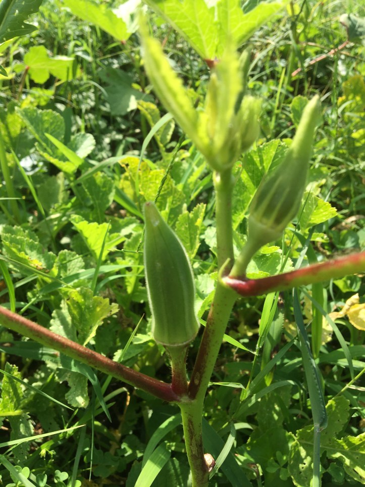 The okra is finally coming, yayyyyy! This is one of our earlier plants, but the others are doing great and budding. This guy’ll be ready for picking tomorrow, I imagine.