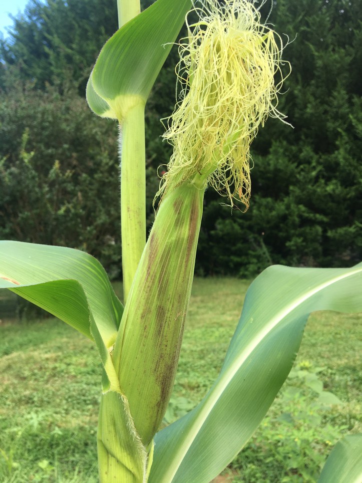It’s corn! It’s corn! And it’s like eight feet tall, as you can see from the second picture. Not all of the corn is the same height (we assume the soil is a bit better in the middle of the row), but they tasseled a week or so ago, and have been popping out ears for the past week. We get to pretend to be the wind and hand-pollinate the ears. Fun times.