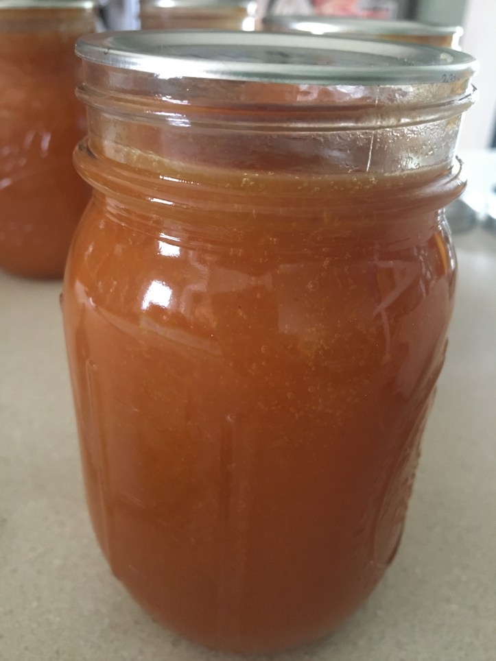 One of the other tasks I’ve been chugging away at has been processing copious amounts of fruit into jam and butter. At one market, the fruit vendor gave me a literal bushel of crabapples. (If you’ve never seen a bushel, it’s about the size of a medium moving box. It’s a lot of apples.) Thankfully, crabapples don’t have to be peeled or even cored to turn into butter – you just cook them, puree them, and cook them again with sugar and whatever seasonings you want. They turn into a delightfully smooth, tangy apple butter that I’m favoring over anything else I’ve canned with apples so far.