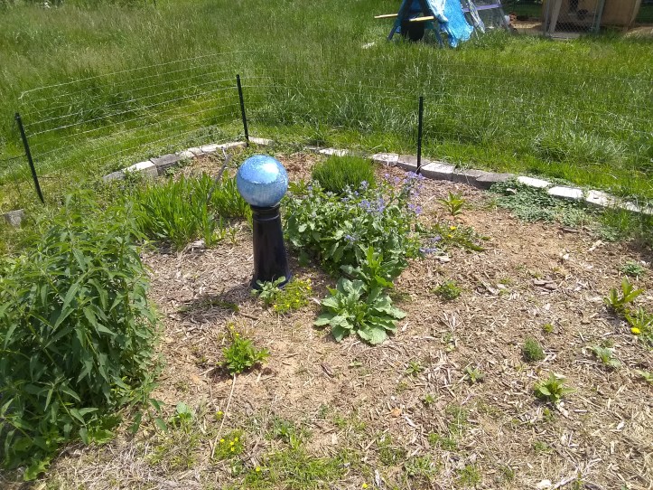 Dismantling the front circle bed that I hated. Don’t get me wrong – there are some nice daffodil bulbs in that bed that come up every year, but everything I plant in that bed gets overrun by crabgrass, and because of the stones around it, I could never mow within a foot or so of the bed, which drove me nuts. Now, the stones have been moved to encircle the moon garden, and we’re letting the front bed blend into the meadow we’ve got going in the front yard. Ahhhh.
