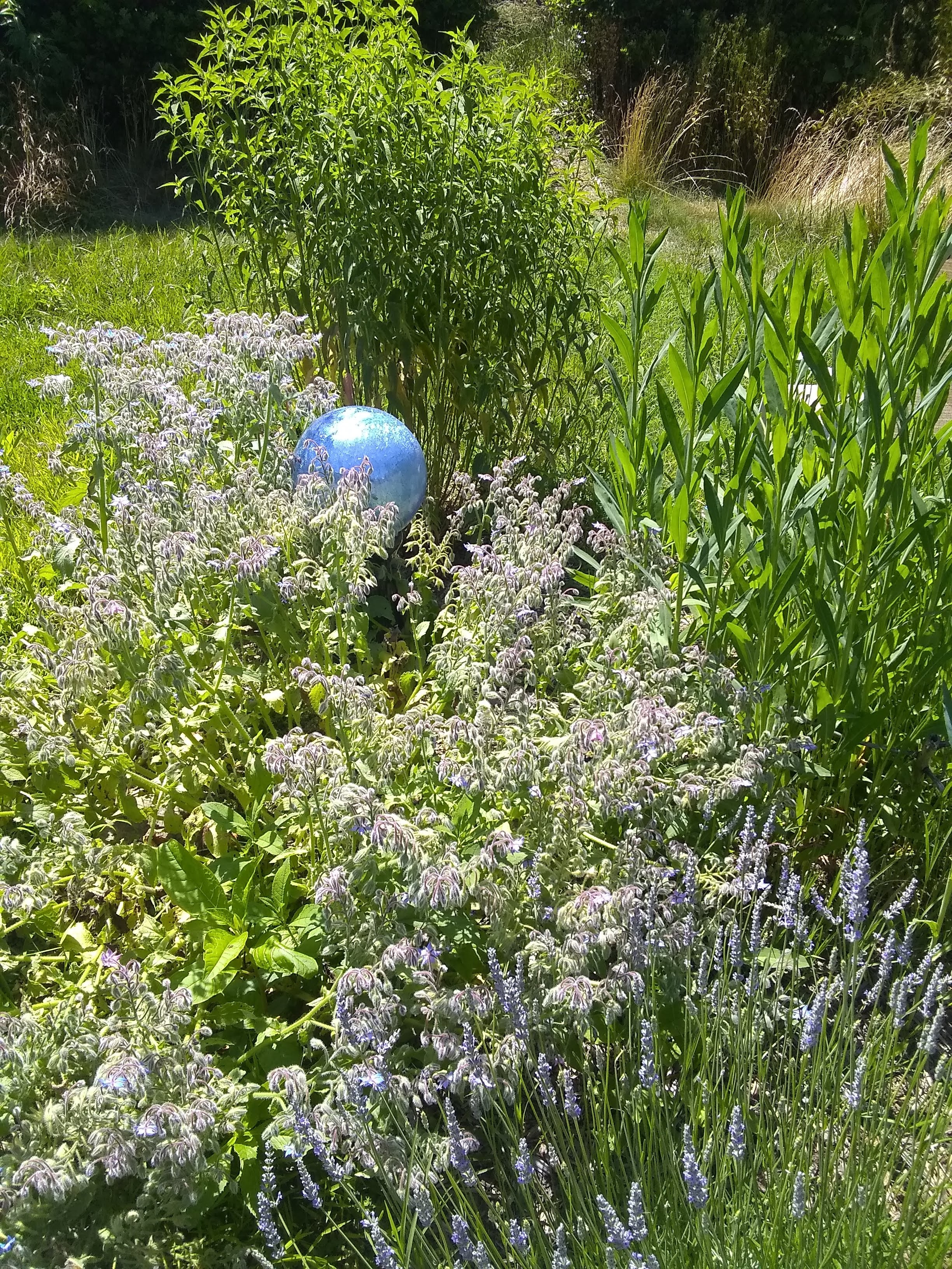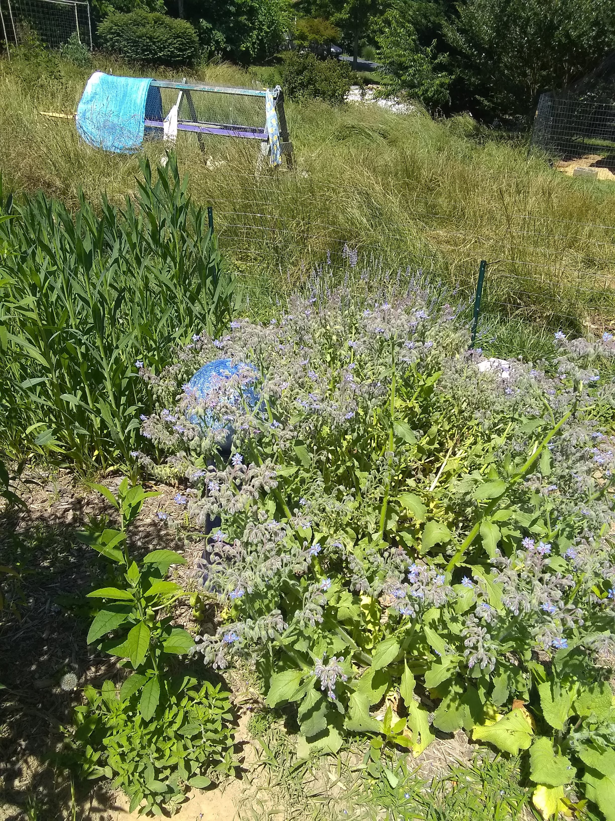 So the moon garden exploded even beyond what was pictured in the last update post! Lots of volunteer borage, along with North American bergamot and sweet-smelling flowering lavender that I planted last year. The bush is now over two feet tall, from my three-inch seedling, hooray! I’m hoping a similar thing happens with the rosemary seedling I planted earlier this year.
