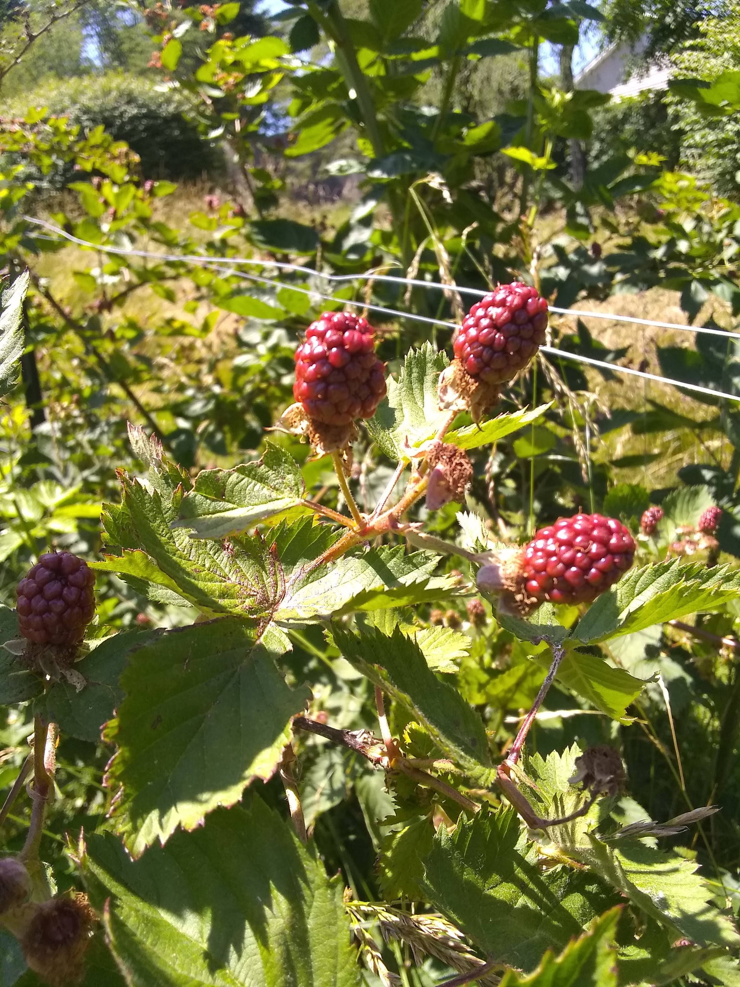 Get excited, y’all – our blackberries are so close to being ripe, which means all sorts of blackberry goodness in baked goods! Many of our fruit tree bare root plantings are also thriving this year, including the persimmon (?) pictured. (It’s either a pawpaw or persimmon sapling; their leaves looks verrrrry similar to this amateur botanist.)