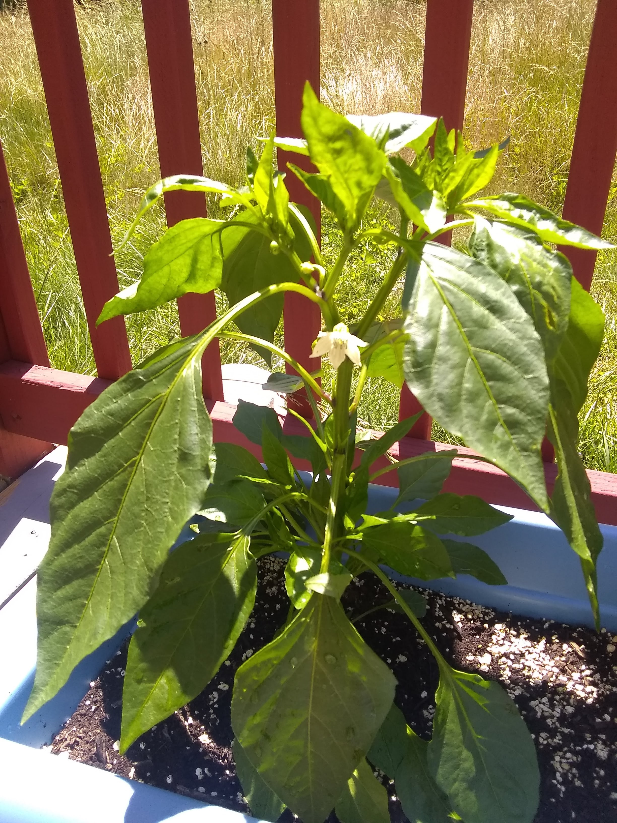 We’ve also got asparagus getting crazy for its second year, which means we should get a good third-year haul for actual eating next year, yay! The eventual-strawberry bed, which is now full of peppers, kale, and tomatoes (leftover seedlings that didn’t fit in the large veggie bed) is doing fairly well in full sun, so we’ll keep an eye on that.