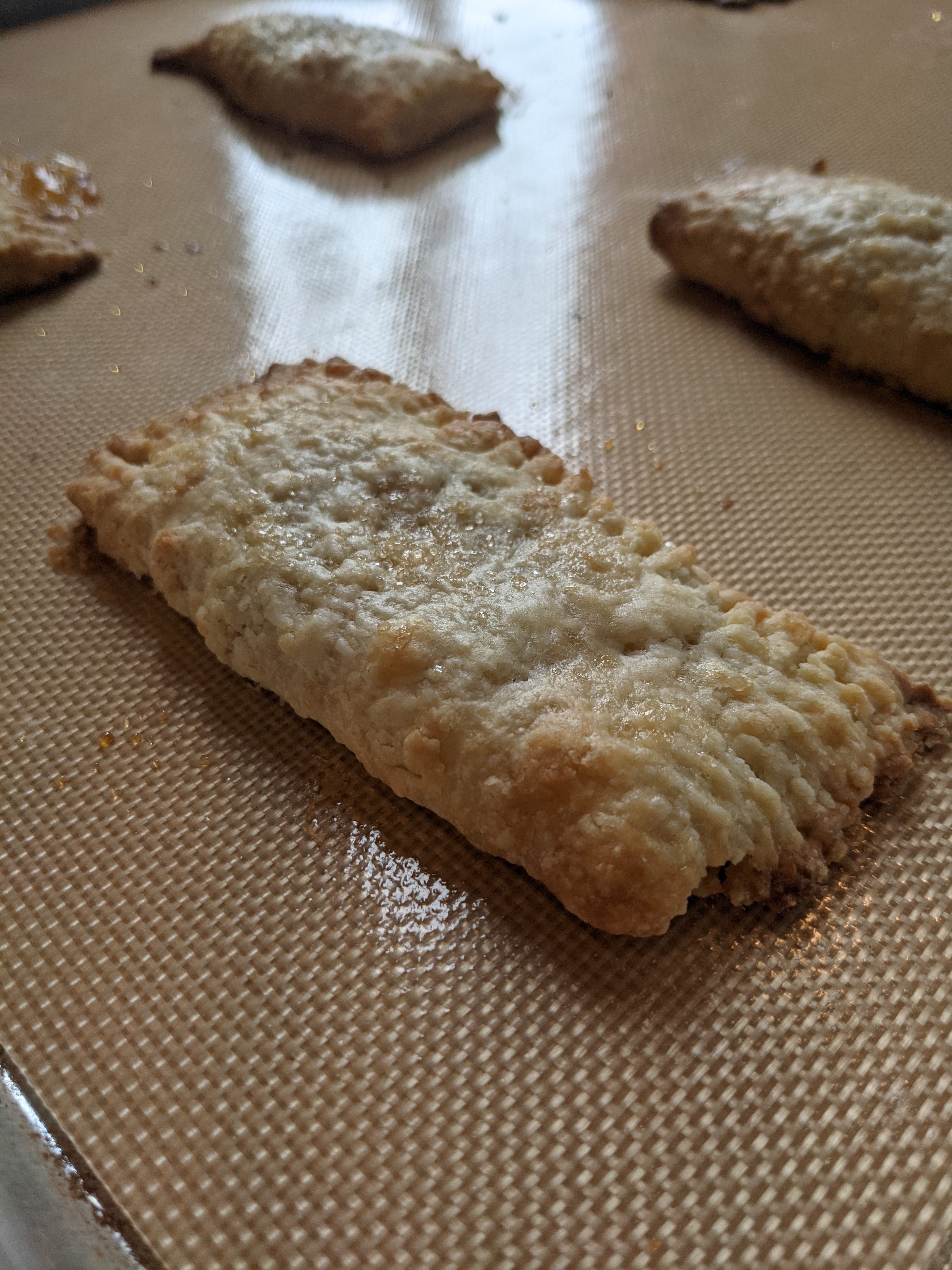 3. If you are not immediately baking the pastries, you can transfer them to a baking sheet in a single layer and freeze them for 1 hour, then transfer them to a Ziploc or other freezer container and save for later. You can then pop them in a toaster oven or toaster, frozen, later when you want them. Or, you can put them on a prepared baking sheet (still frozen), and proceed with Step 4.