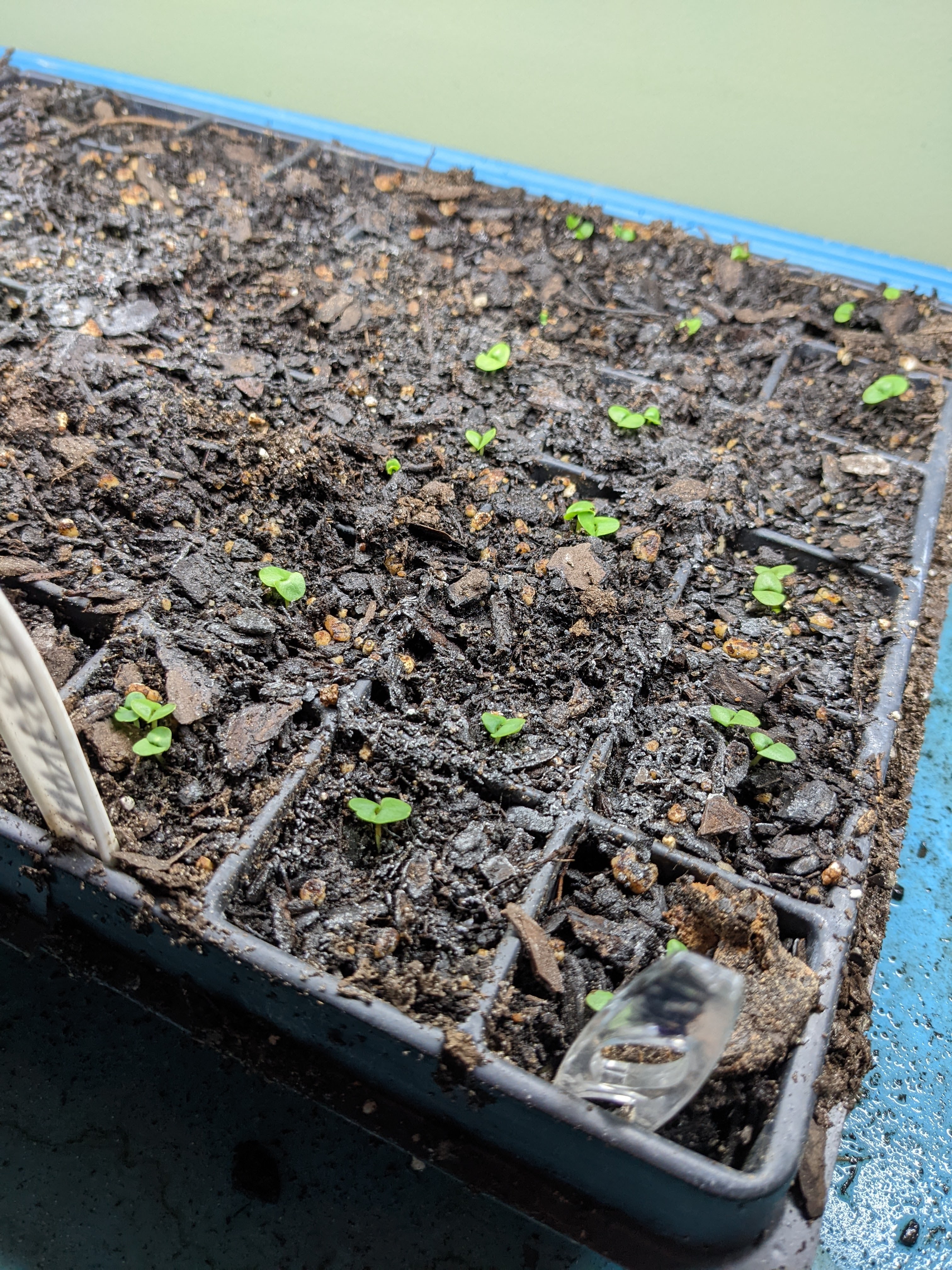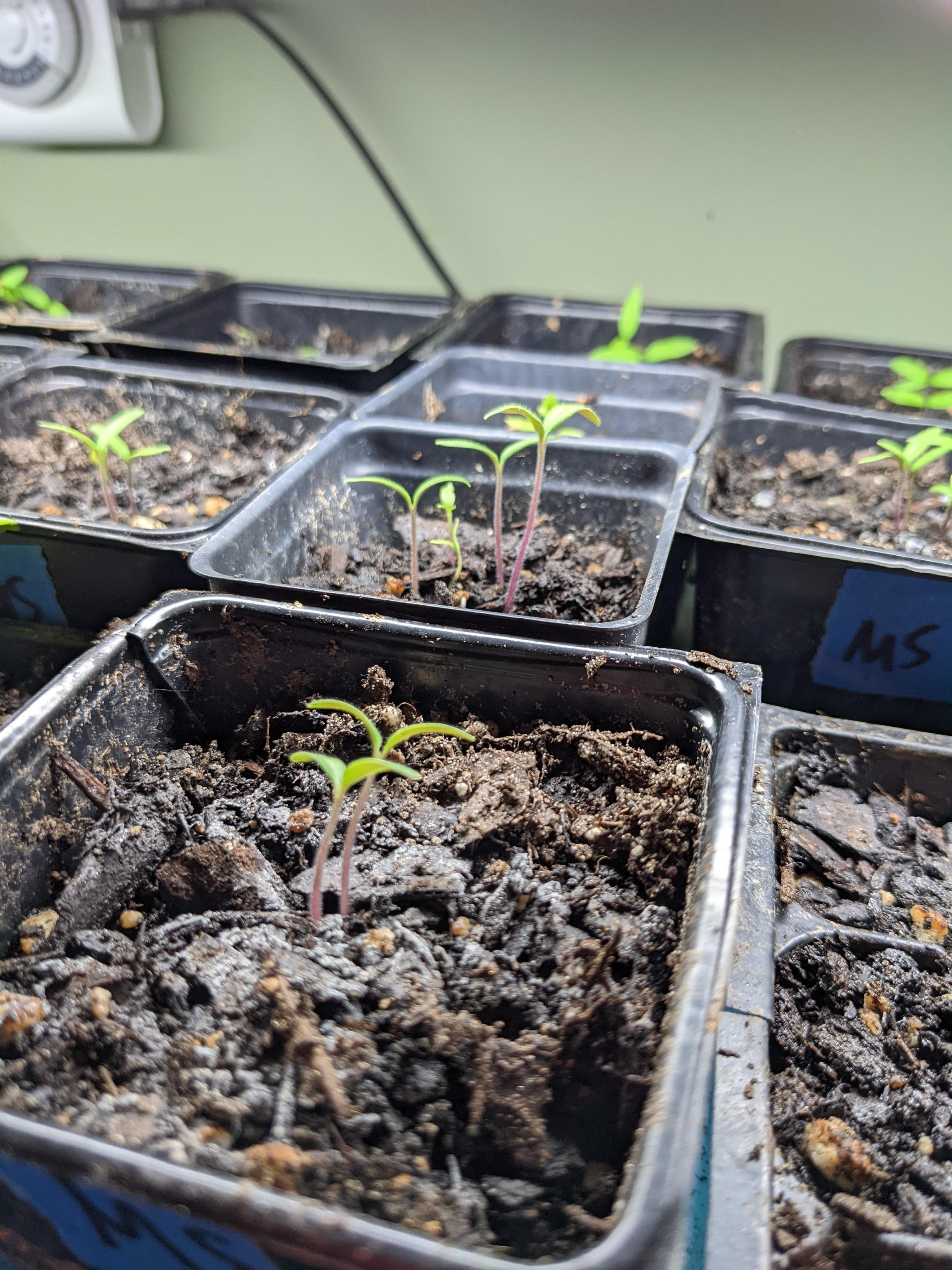 As usual, the peppers are just starting to sprout, while the tomatoes did so a little less than a week ago, with the herbs coming up somewhere in between. Parsley has some true leaves and is taking its sweet time, which is good as far as transplanting this or next month.