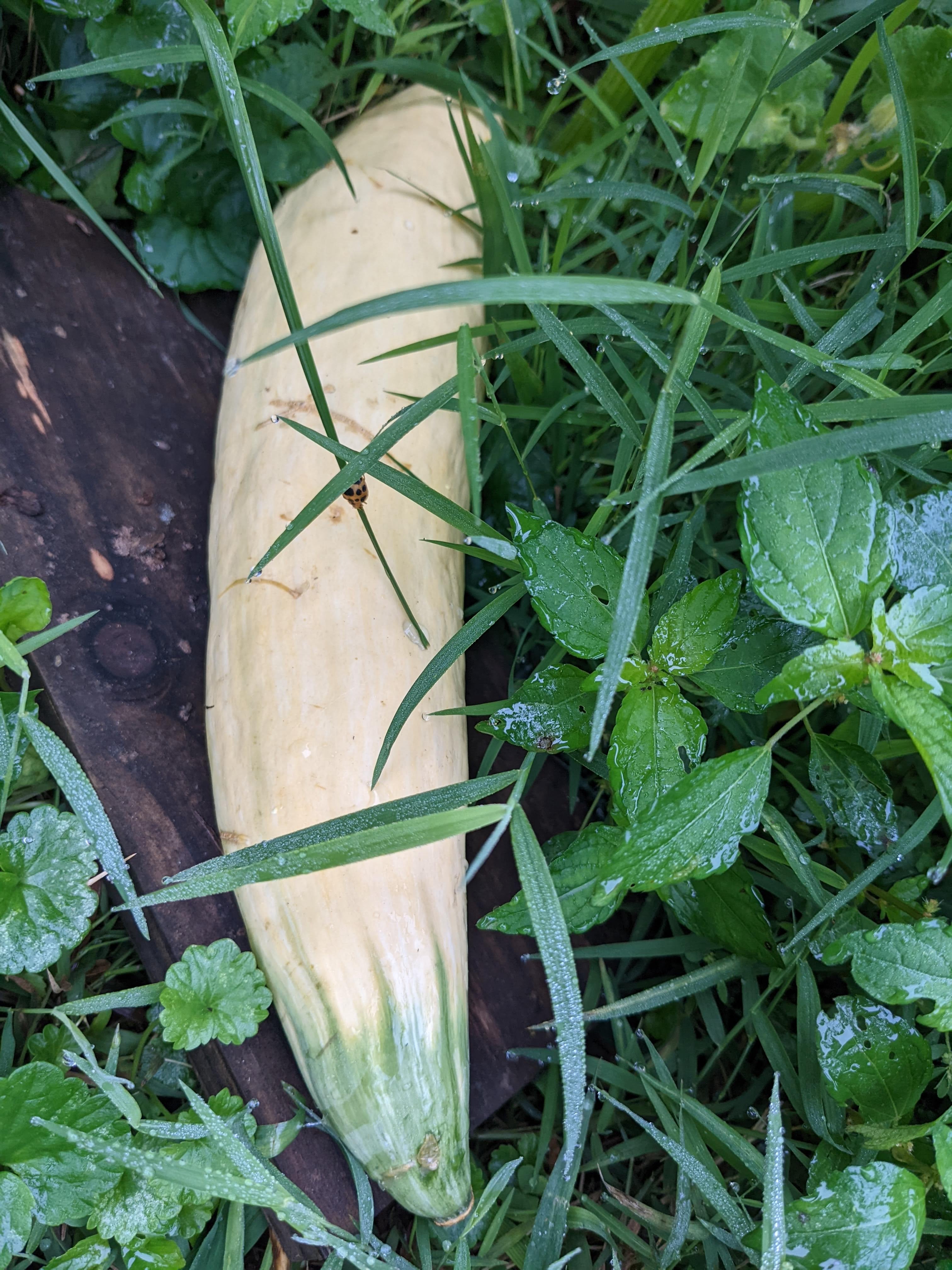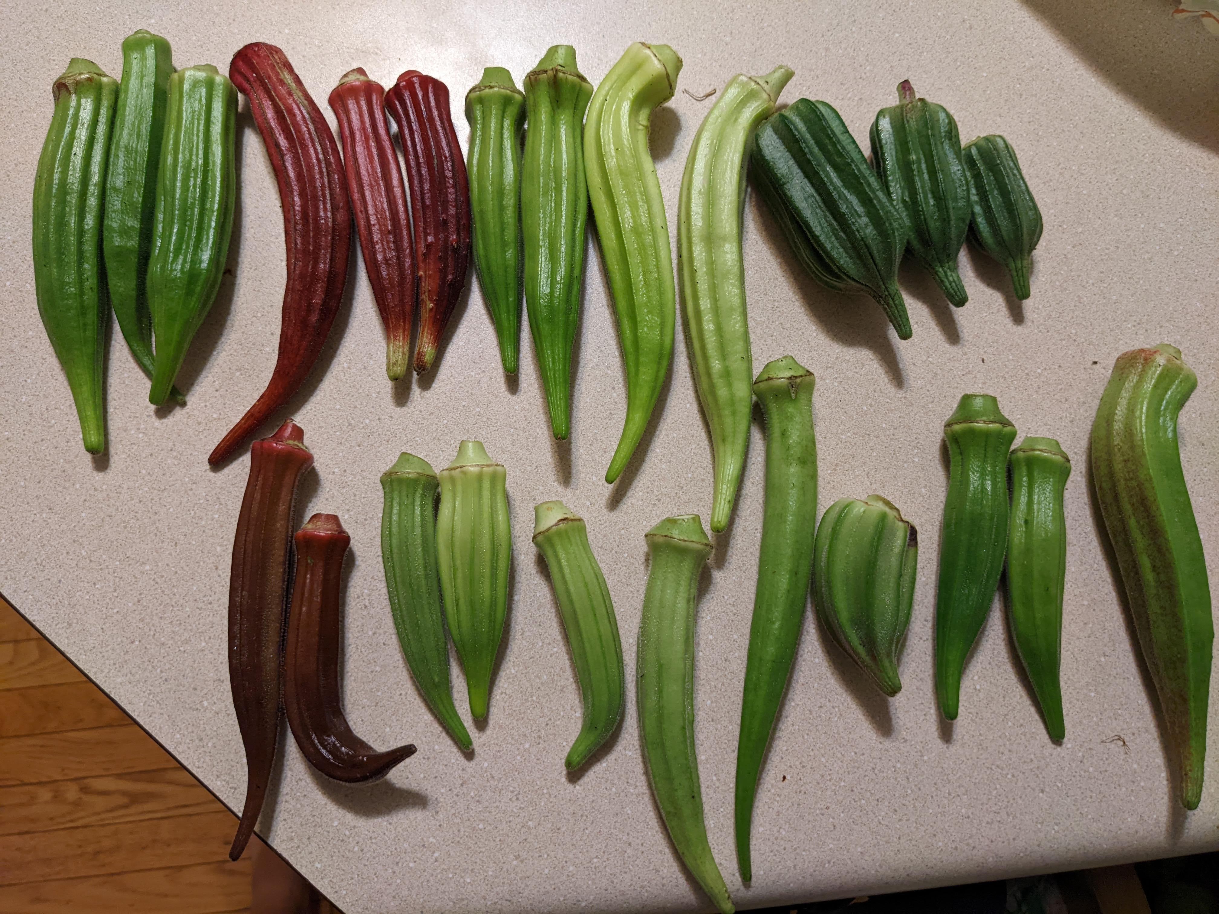 Okra is still going strong, and will continue until that first frost, as will hot peppers and (hooray, finally!) bell peppers. We’ve got at least one big, beautiful candy roaster squash I’m keeping an eye on for our future Thanksgiving feast, and a couple of other small ones that I hope will also mature nicely. I just harvested a huge butternut squash a few days ago, and expect at least a few more from our plants we didn’t lose to powdery mildew.