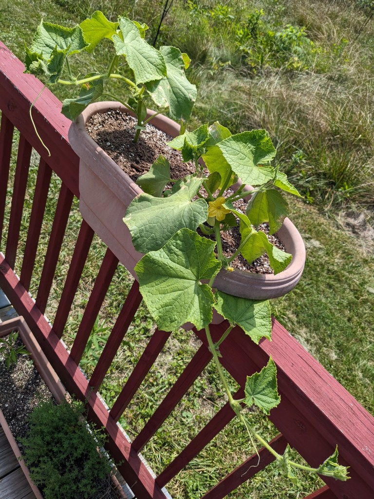 We may get one or two okra plants, but it appears we won’t be getting any bumper crops this year, alas. Peppers are hit or miss (mostly miss), so I’ll be happy with whatever we can get.