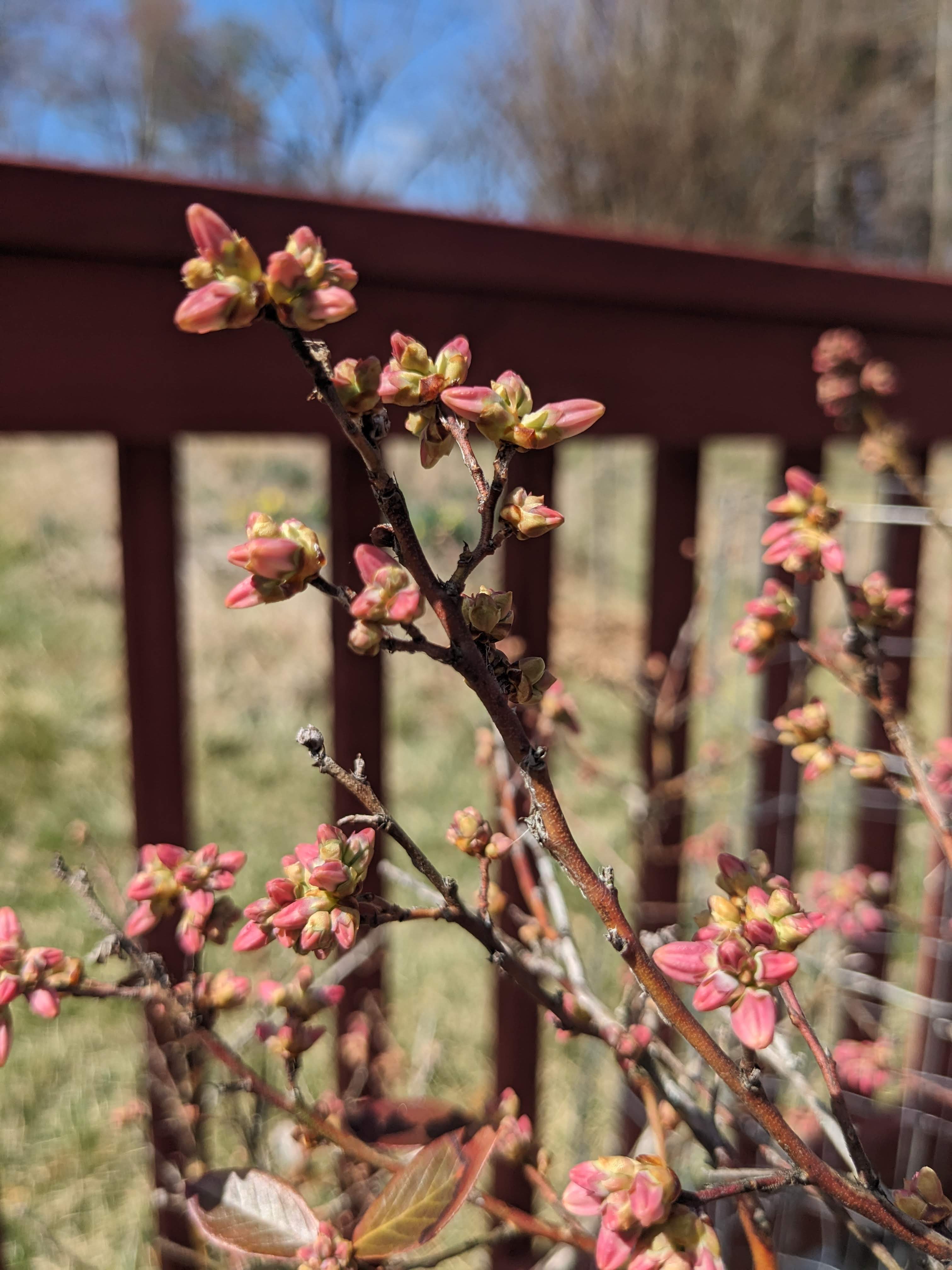 Speaking of sprouting, our porch blueberry is also coming back. This is the year I get blueberries, dangit.