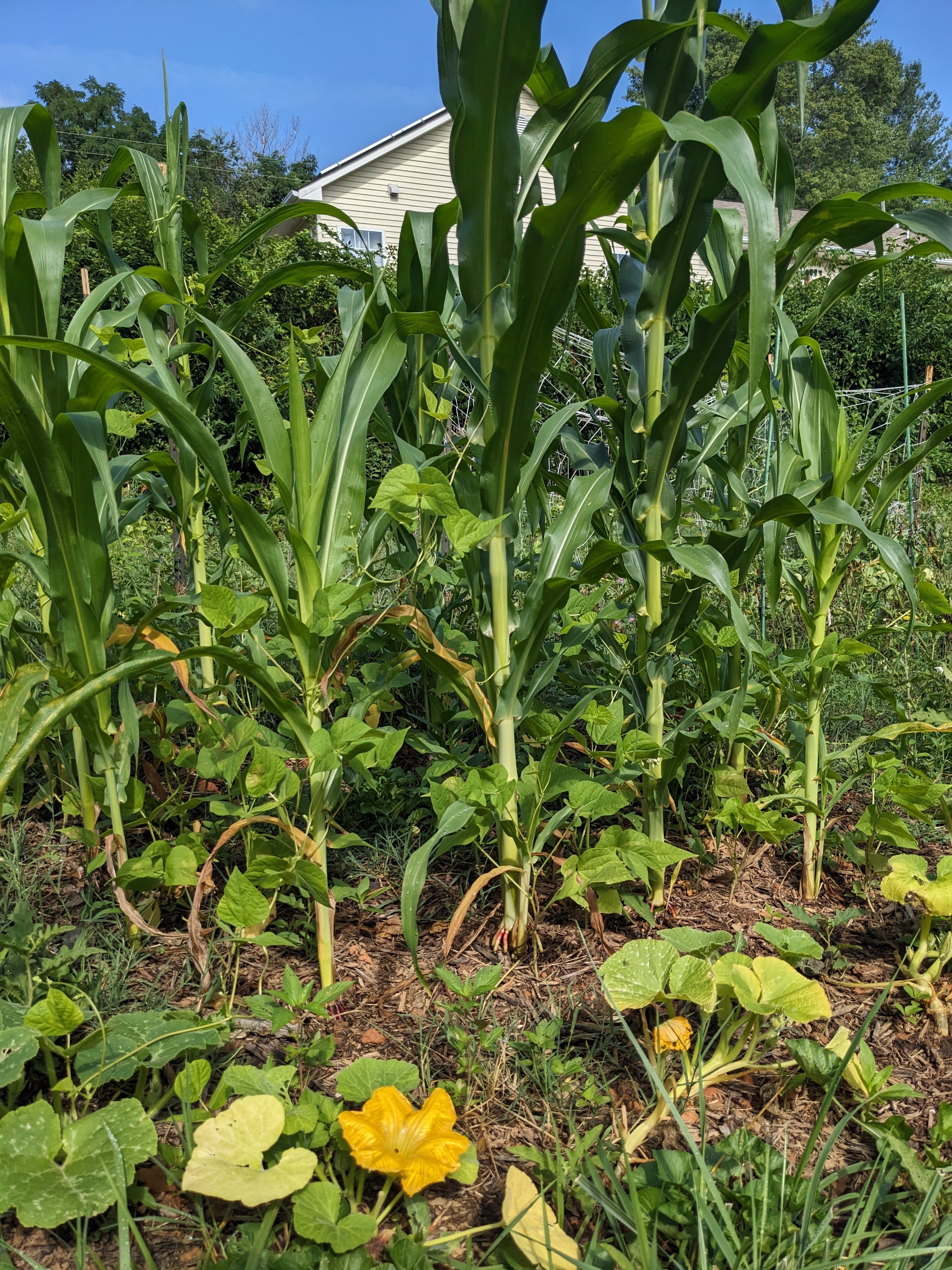 Most of our annual veggies (and fruits that we consider veggies – looking at you, squash and tomatoes) are doing well, despite the July heat so far.
