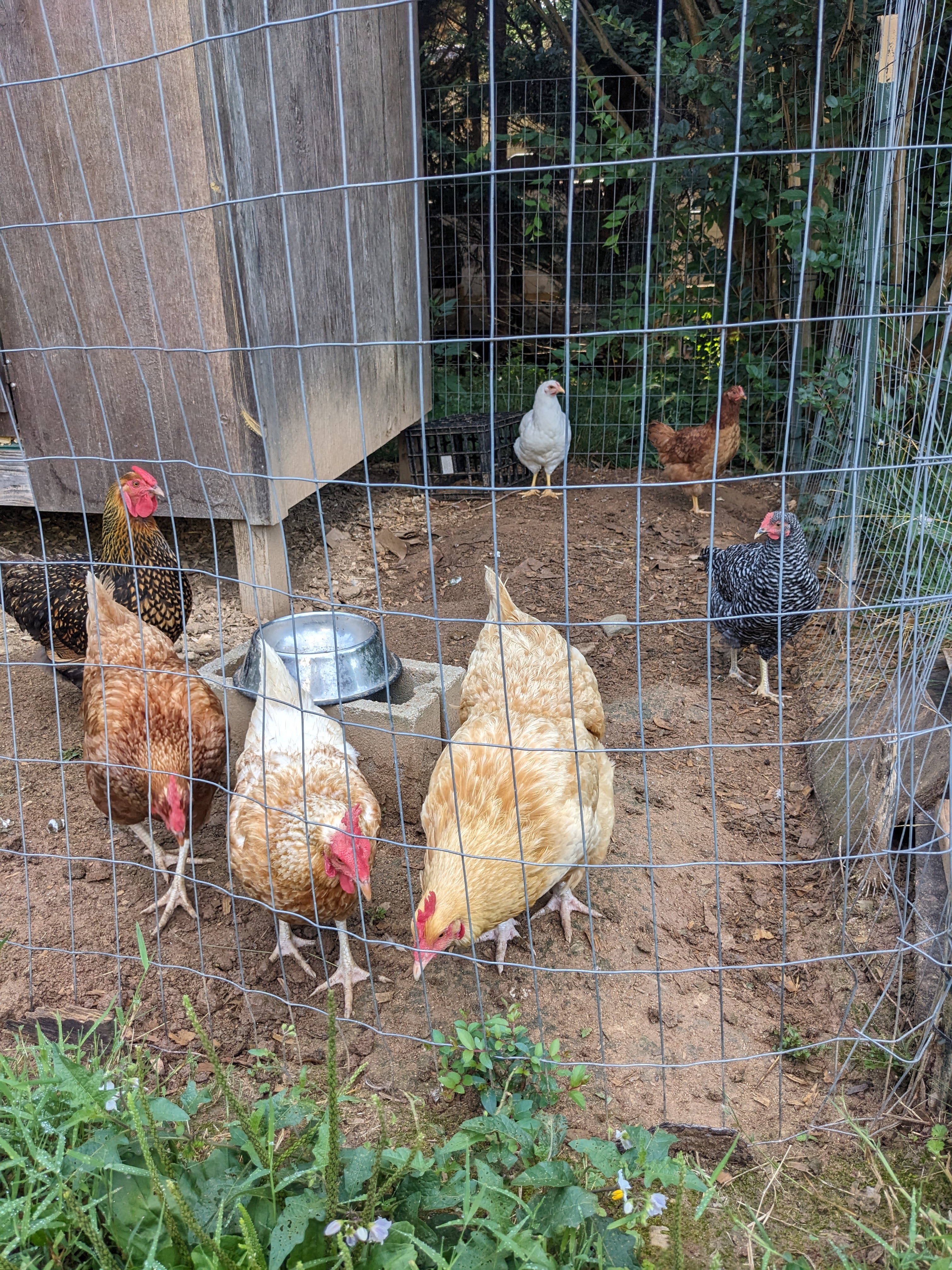 Unfortunately, we lost one of our pullets last month – Pepperoni, the Golden Comet. RIP, little one. Fortunately, the rest of the pullets are doing quite well, and all of the chickens are acclimating to each other, with only the normal amount of chicken pecking (see my post on introducing new chickens to an existing flock if you’re curious).